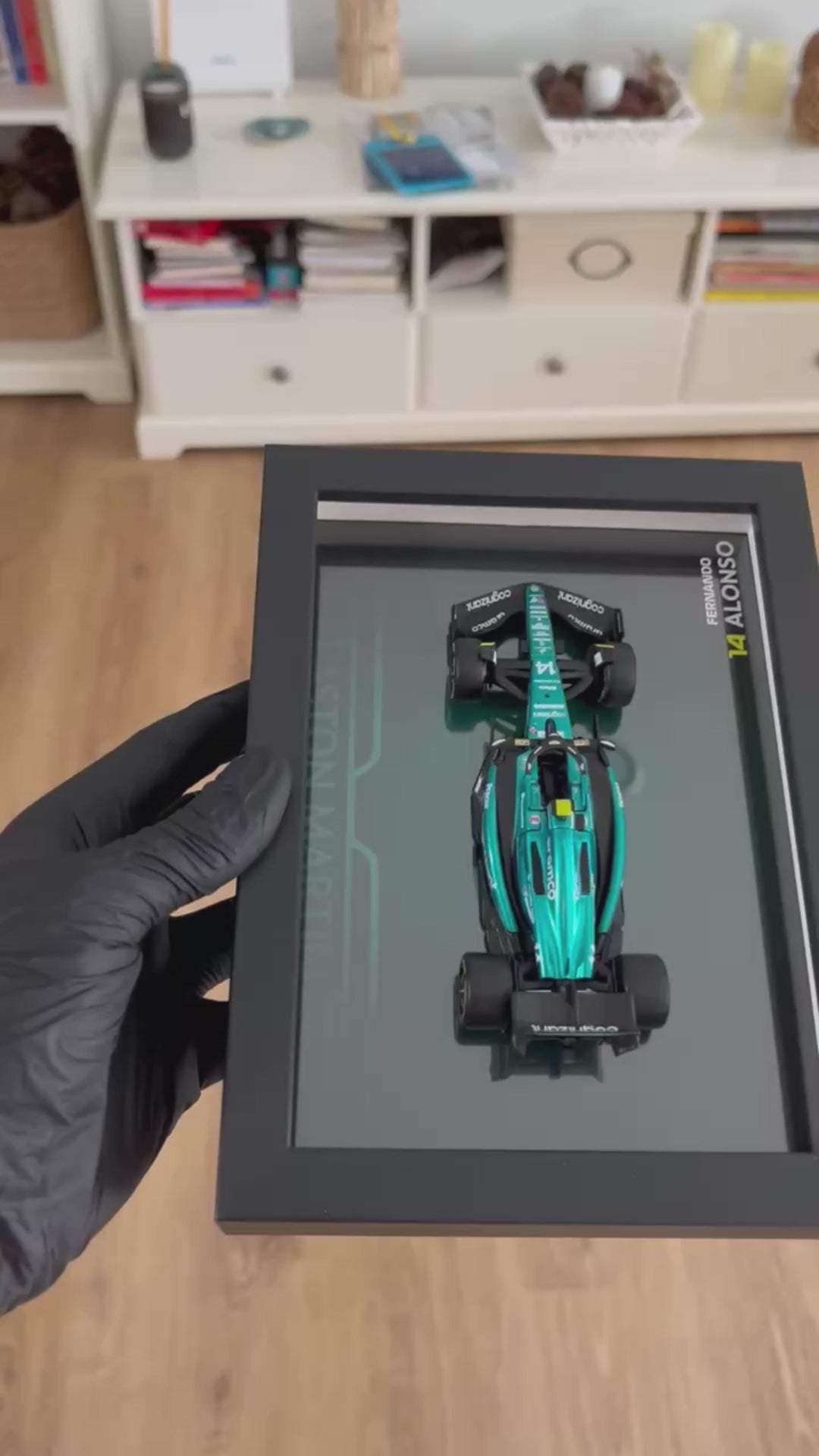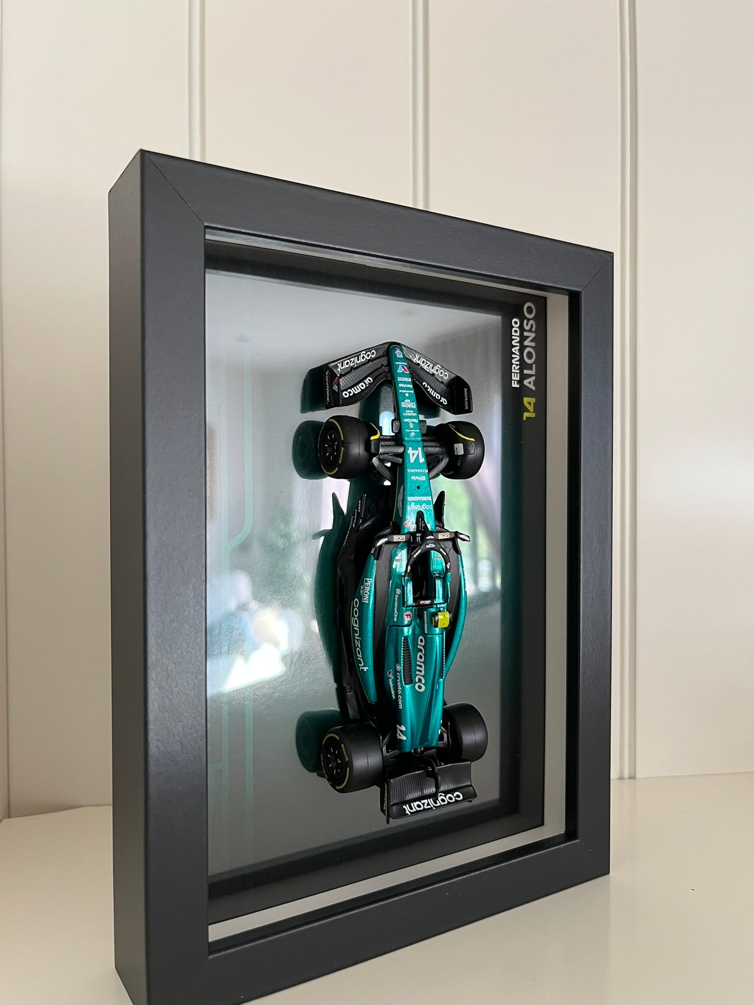 Llévate a casa este pedazo de la historia de la Formula 1 con este cuadro 3D artesanal de Fernando Alonso en escala 1:43.
