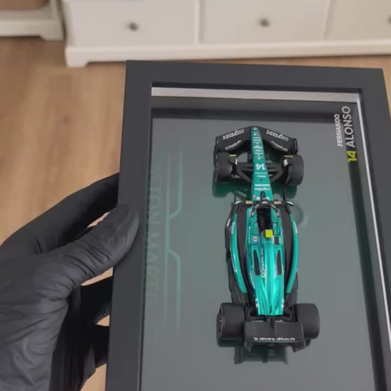 Llévate a casa este pedazo de la historia de la Formula 1 con este cuadro 3D artesanal de Fernando Alonso en escala 1:43.